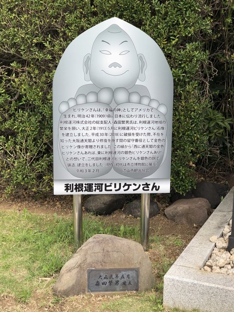ちなみに、ゆかりさんはなんでビリケンさんがここにあるのかわからないと言ってたけど、利根運河を作った森田氏が観光業による町おこしのためにビリケンさんを置いたというのが真相の模様。なんか、どっかの魚心くんみたいな……。